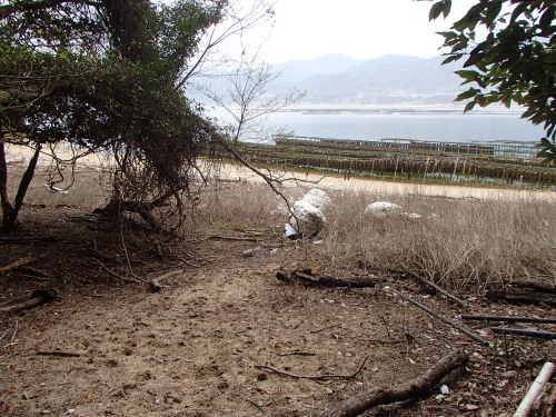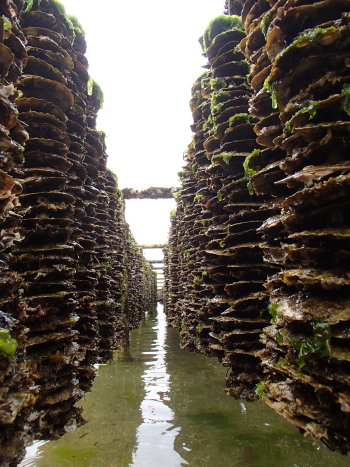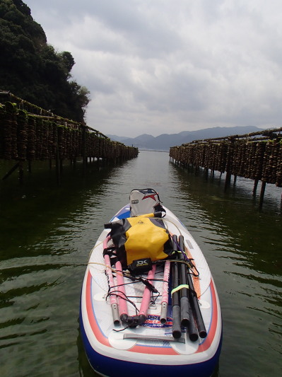 牡蠣の種付け場の間を通ってさて、帰りましょう。