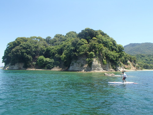 今日は雲一つとないブルースカイでした。 写真をみるとどこにも雲がありません。 ブルースカイとエメラルドグリーンのナルー宮島SUPクルージングでした☆☆☆