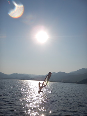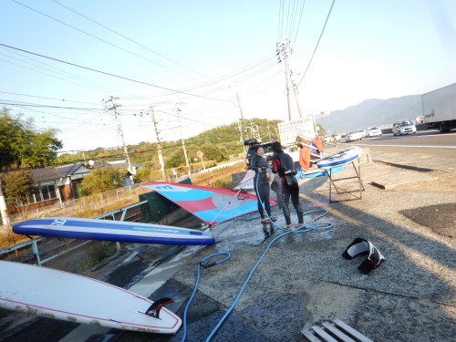 この時期にこんなにたくさんのウインドサーファーが集まるのは珍しいですね。