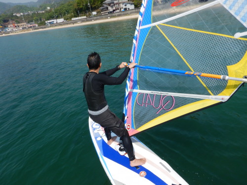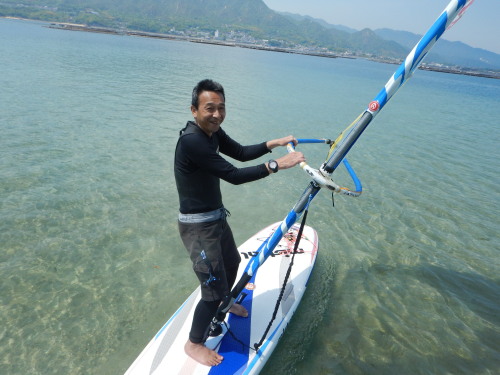 先週可部島で出会ったパドラーさんがウインドサーフィンの体験に やって来られました! 早速の来ナルー、まことにありがとうございました。 ウインドサーフィンを始める人が増えると嬉しいな〜〜(*^_^*)