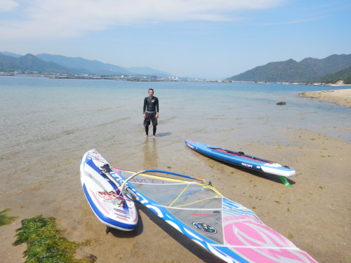 2018 04 29(日) 南西0〜1のち南2〜4m/s 朝から15時までは微風のちに15時ごろから風が吹いて来ました。 宮島付近ではプレーニングしたでしょうね。 今日はウインドサーフィンスクールで宮島まで行って来ました。 海はきれいだし、遠浅なのでスクールにはぴったりですね。 次回からここでスクールしようかな!?