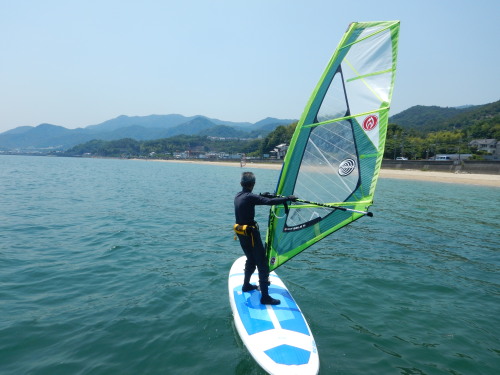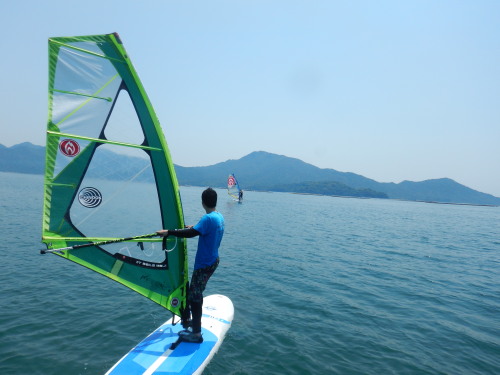 2018 06 02(土) 南 1〜3メートル ウインドスクールスクールです。 最近、SUPよりもウインドサーフィンを楽しむ方が増えてきたので嬉しいです♪ 今日はウインド初体験者さんにとってはベストな風でした。 開始後は微風でウインドの基礎練習です。 ロープタックの練習です。 最近のスクール生さんは皆さんすぐに乗れるようになるので、 方向転換が出来ることが大切な課題となります。 と、言う事で、微風な時に方向転換の練習です。 その後に 風が吹き、しっかりと風を入れてのセイルトリムの練習です。 今日一日で、お越し頂いたスクール生さんは、3日分のスキルアップをしました。 道具と、ウインドコンディションが整えば、ウインドサーフィンの上達も近道になりますね! | ||