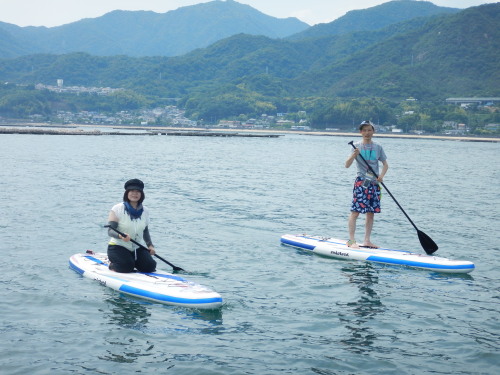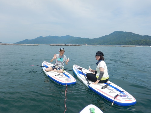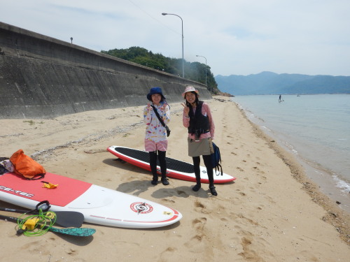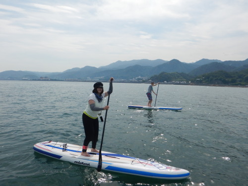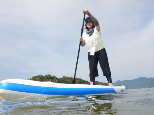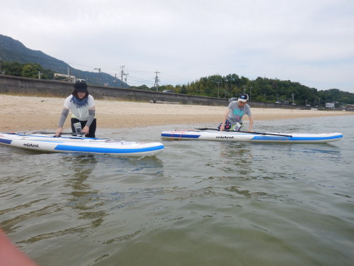 昼からはSUP体験です。 新婚旅行に沖縄に行き、SUPに嵌り、広島で再トライしたくて ナルーにお越し頂きました。 新婚旅行の次にナルーでSUPなんて、ステキすぎです(*^_^*)