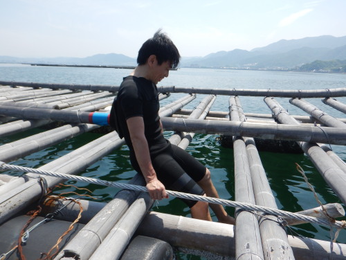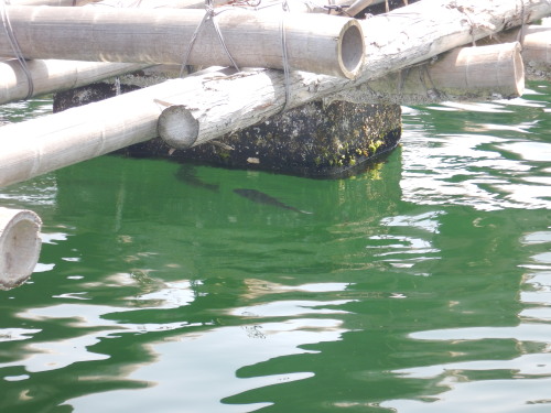 牡蠣イカダの下にです。 気持ち悪いぐらいに、石鯛と、チヌがいました。 見える範囲で10匹はいます。 釣りをしたくなりますね・・・