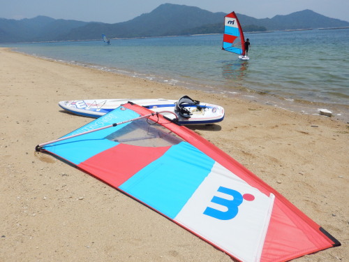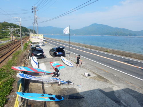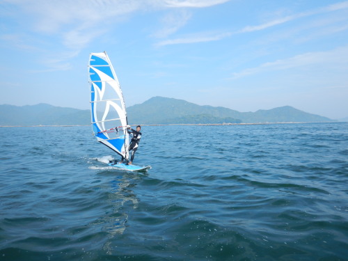 2018 06 09(土) 南 1〜6メートル 午前中は微風でしたが、昼から吹きました。 宮島須屋浦ビーチは5.9でプレーニングコンディションでした! 今日は、きぬちゃん、ジュンキー、タスクがやって来ました! ナルー人が集まって来ました! 真夏到来ですね! | ||
