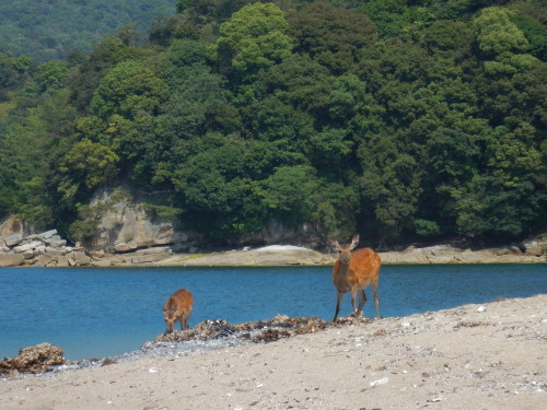 今日は鹿さんがイッパイ居ました。 海と鹿・・・ 神の島の鹿・・・ 神鹿ですね・・・