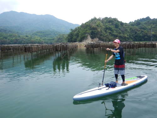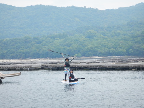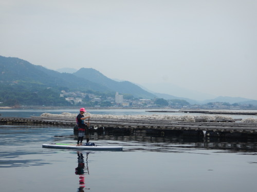 潮が良いですね。 宮島で一番大きな牡蠣の種付け場です。 SUP鬼ごっこして遊べます♪
