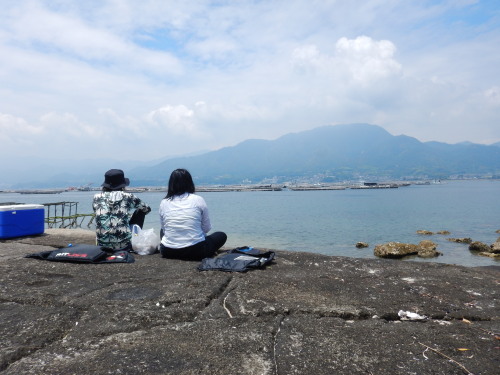 牡蠣イカダとスリーショット!