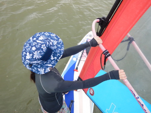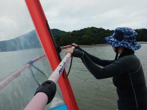 るみさん、無風の中で、パンピングの猛特訓です。