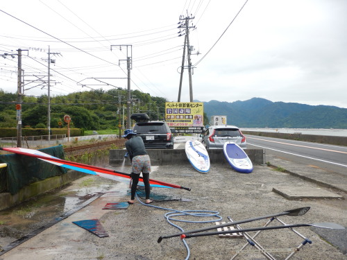 2018 07 07(土) 無風SUPクルージングコンディション 大雨の後、ナルーウインドサーフィンスクールです。 ナルーハウスもナルービーチも無事ですが、海水が濁りまくっていました。 土砂が流れ出て瀬戸内海がにごりまっています。 チンしたくない感じです・・・(^_^;)