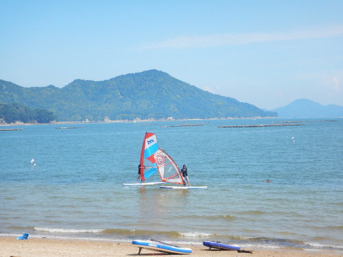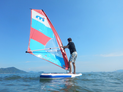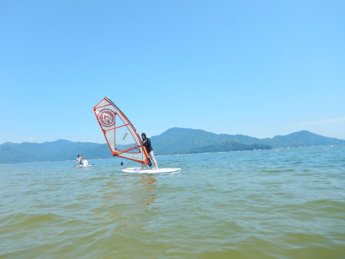 ウインドサーフィンスクールです。 神奈川、福岡から廣島に集まった方々です。 ひとりは広島の方です。 こんな、出会いもあるんですね! イマドキー!!