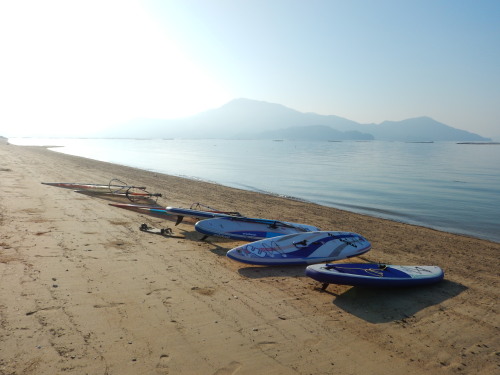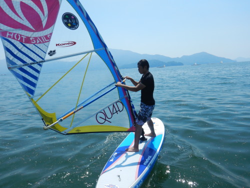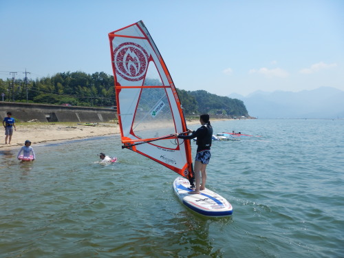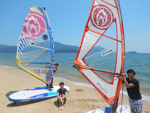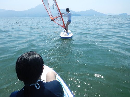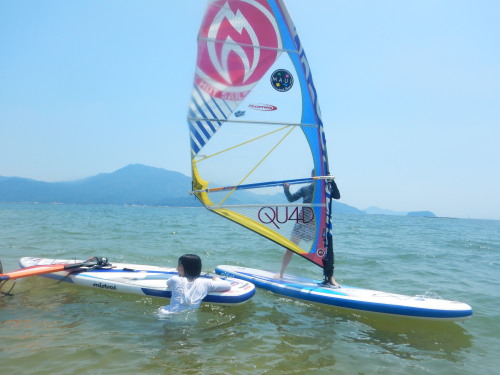 今日は午前中はウインドサーフィンスクール、昼からはSUP体験でした♪ | ||