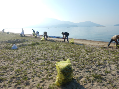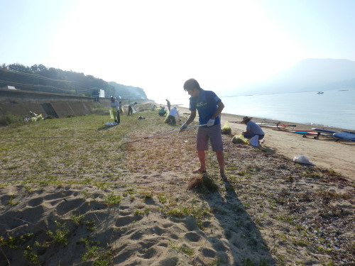 2018 07 15(日) 南2~3m/s 早朝から宮島ボランティア清掃活動です。 ナルーが参加してもう十何年なりますかね??? この日を境にビーチがぶちきれいになります。 継続して、ナルービーチをきれいにしていきます。 きれいなビーチで海遊びすると、ウインドサーフィンもSUPもより楽しいですよね♪