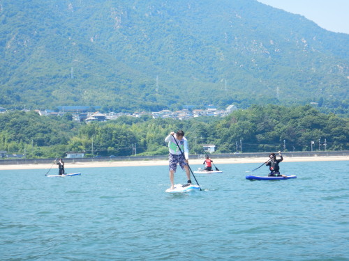 SUP体験です。 幅広い年齢と、技術力の方と練習するととても 成長させて頂けます♪