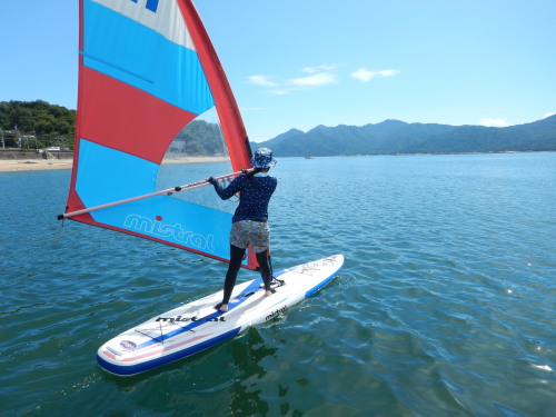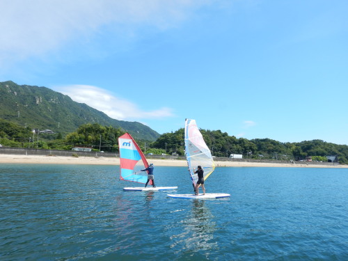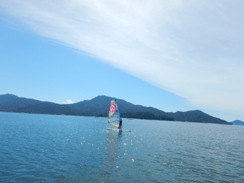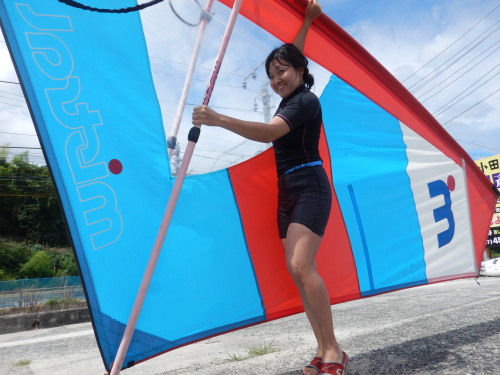 2018 07 22(日) 南1〜2m/s 16時からサーマル4~5m/s 今日はウインドサーフィンスクールでした。 るみさんとまどおちゃんがやってきました。 4回目と2回目です。 ウインドサーフィンを続けてくれる人が増えて嬉しいです♪