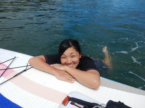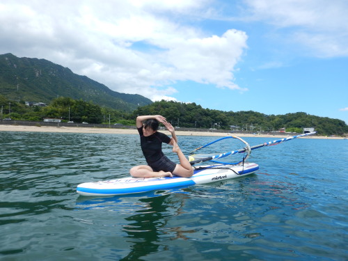 まどおちゃん、 世界初のウインドSUPヨガです!