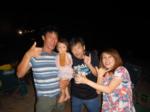 しめはナルーの神様もっさんとゴジー、ちえみちゃん、よーこちゃん♪ よーこちゃん、ビールが美味しそう さすがのんべえ二人の子(笑)