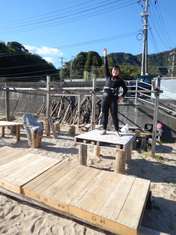 ナルーお立ち台完成! 時にはBBQテーブル、時にはラジオ体操台、時にはヨガ台に早変わりです♪