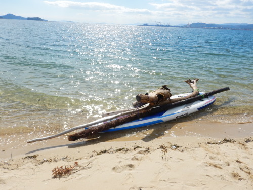 2018 10 28(日) 西 6.3 今日の6.3でプレーニングしました。 朝から夕方までコンスタントに右サイド6.3ジャストの風が吹きました。 天気も良く、暖かいのでシーガルで楽しめました♪ 風がない時に、ナルービーチハウス用の流木をゲット! SUPって、流木運びにも便利ですね♪