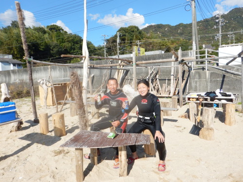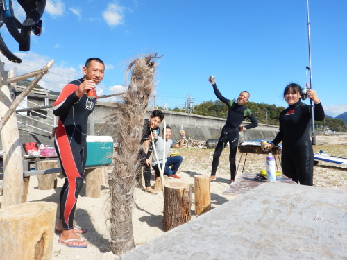 2018 11 03(土) 北東の風ブローでプレニングのち南西の風 春の風ですね。 天気が良くてキモチの良い一日でした。 今日は、ナルービーチハウスの竣工式です。 西日本防雨災害での流木で建てた海の家です。 ぶち豪邸になりました。 今日は、殻付牡蠣BBQパーティしてお祝いしました〜〜〜! 美味しかった〜〜〜!