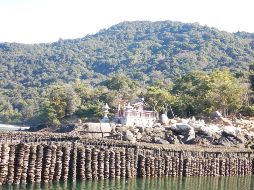 御床浦神社 カキの種付け場とのコラボがこれまた、神秘的です。
