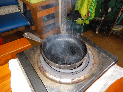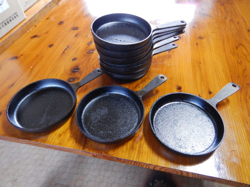 午前中は、風も安定してなかったので、スキレットの酸化被膜処理しました。 黒錆がきれいに付着です! 9個も酸化被膜処理すると、かなりのベテランですわ(笑)
