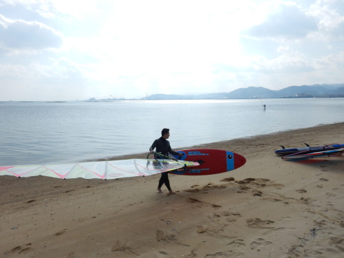 天気も良く暖かい一日です。 1月2月は真冬と言われていますが、本当に寒いのは雪が降る日だけです。 あとは、オールシーズンあったかいウインドサーフィンコンディションです。 広島ってステキ☆