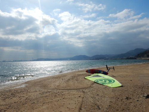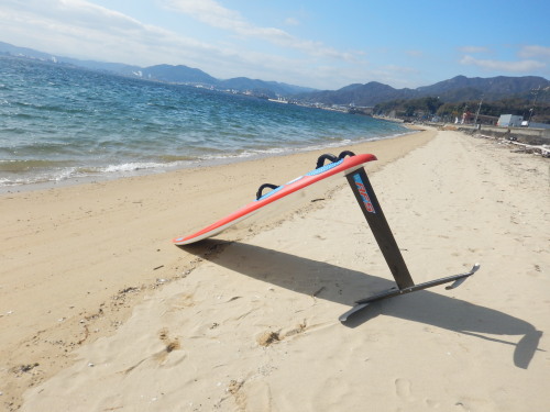 初めて、ウインドフォイルを体験しました。 133ボード+カーボンウインドフォイルと6.3セイルで海に出ました。 出た瞬間に、ウインドフォイルジャストコンディションの風がやって来ました〜〜〜 海面からボードが浮き上がった瞬間に、アドレナリンが出まくりです! どんどん、ボードが浮き上がり、お空に手が届くと思いました。 びっくりして、セイルコントロール出来なくなり、そのま風下に叩きつけられました。 3回叩きつけられと、後は、コツを掴み、お空と手を繋ぎながら、海の上を滑走しました。 Wind foilはマジ、難しいです。 プレーニング出来る人がキホンで楽しむことが出来る、ウインドサーフィンの楽しさを事前を越えた、 究極の楽しさが、ここにあります。 この楽しさを例えるなら、月旅行ではなく、太陽旅行です。