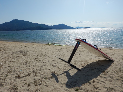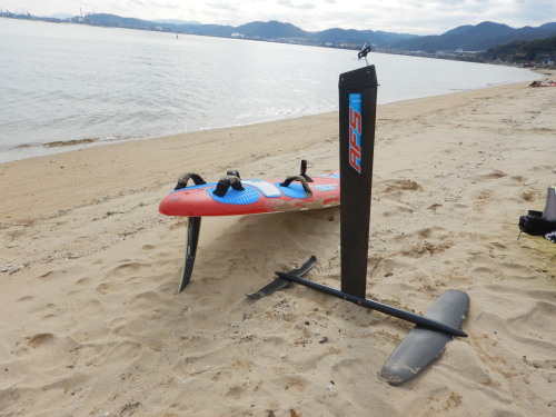 10時に到着! 爆風です! ウインドなら、5.9プレーニングコンディションです。 ですが、先週から始めたウインドフォイルを乗りたいために、6.3ナルーセイルをチョイスです。 風が落ちても、楽しめますからね♪ 結局、フォイルビギナーの41は爆風でコントロール出来ずに、 海面に何度も叩きつけられました。 Wind foilって、簡単にコントロール出来ないから楽しいです! いつか、太陽まで行きます!(笑) | ||
