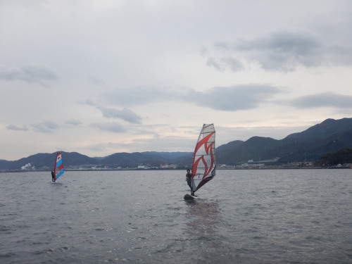 さるちゃん、昨日も今日もウインドに夢中です! 真冬のウインドサーファー! かっこいいよ!